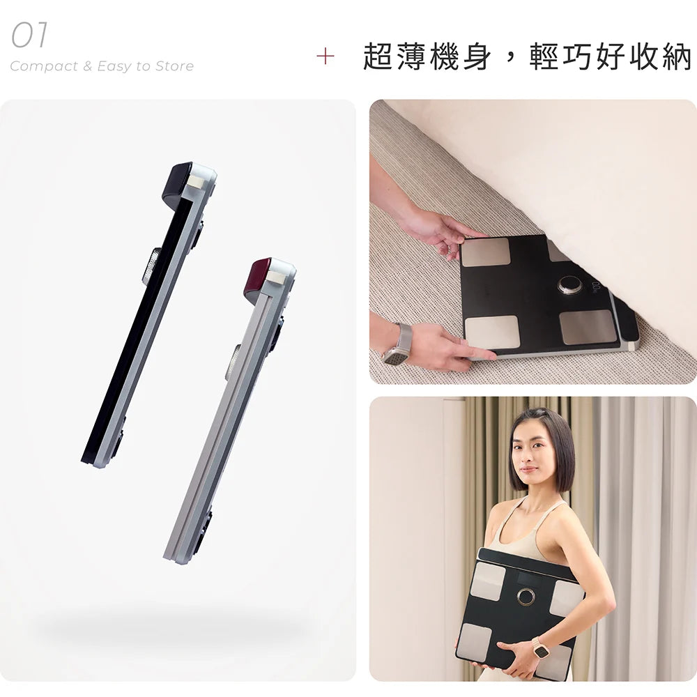 首創上半身左右、下半身左右兩側進行平衡檢測,並精準分析內臟脂肪與腿部肌肉量 ,揭示潛在健康風險。 -